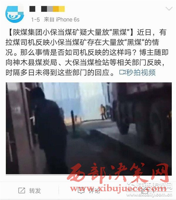發(fā)稿前,記者又在網(wǎng)上獲悉,1月5日就有網(wǎng)民向神木縣煤炭局和大保當(dāng)煤管站反映過(guò)小保當(dāng)煤礦銷(xiāo)售黑煤的現(xiàn)象,該網(wǎng)民稱(chēng)此事時(shí)隔多日未得到相關(guān)部門(mén)的回應(yīng)。
