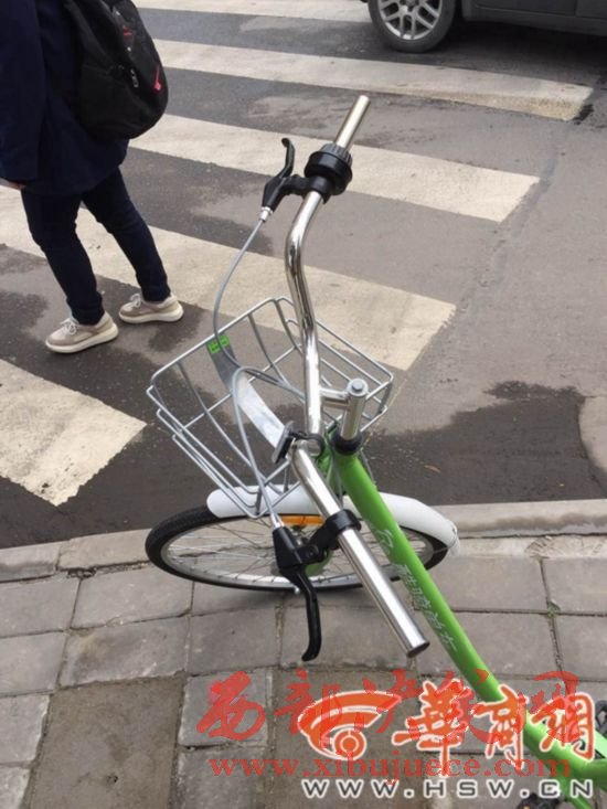 街頭一輛酷騎單車(chē)的車(chē)把手被人卸掉。