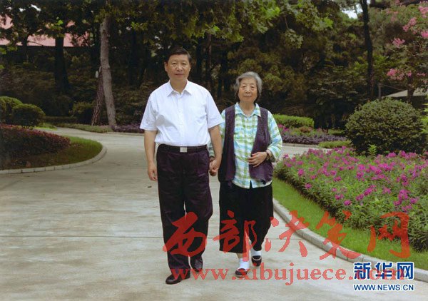 這是習(xí)近平陪母親齊心散步。