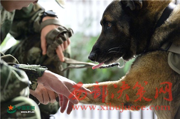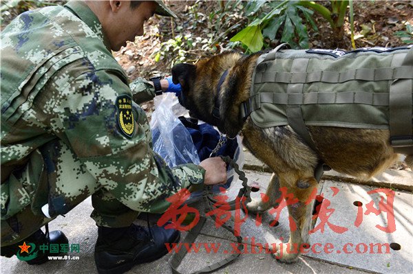 “好樣的,晚上給你加菜!”下午5時(shí)10分,終于在一處枯草前停了下來,訓(xùn)導(dǎo)員上前翻開遮蓋物,臟物、衣服、手套等一包東西出現(xiàn)眼前,任務(wù)圓滿完成!據(jù)悉,“道海”從2012年服役以來,先后出色完成了緝私、緝毒、軍警聯(lián)勤等20多項(xiàng)機(jī)動(dòng)任務(wù),多次榮立戰(zhàn)功,受到上級(jí)嘉獎(jiǎng)表揚(yáng),是名副其實(shí)的“功勛犬”。