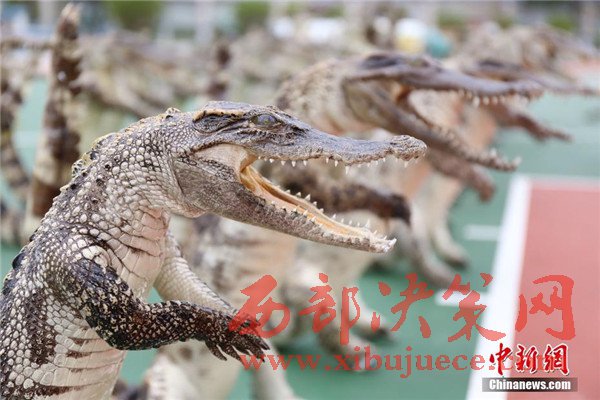 其中鱷魚標(biāo)本32件為站姿,45件為爬行姿態(tài),最大的標(biāo)本長度近2米。