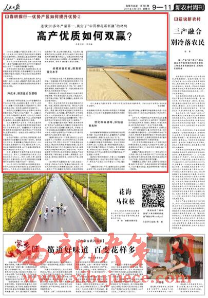 2014年,實(shí)行3年的棉花臨時(shí)收儲(chǔ)制度退出,取而代之的目標(biāo)價(jià)格改革試點(diǎn)旨在讓棉花回歸市場(chǎng)定價(jià)。幾年來(lái),價(jià)補(bǔ)分離機(jī)制正在逐步形成。但是棉價(jià)下跌,也讓棉農(nóng)增收承壓。與此同時(shí),隨著國(guó)內(nèi)紡織企業(yè)轉(zhuǎn)型,棉花產(chǎn)業(yè)鏈的下游對(duì)高品質(zhì)的棉花需求量不斷加大。但高品質(zhì)的棉花產(chǎn)量不高,有效供給難以對(duì)接需求,成為新疆棉花產(chǎn)業(yè)的發(fā)展瓶頸。降成本、提質(zhì)量已是迫在眉睫。