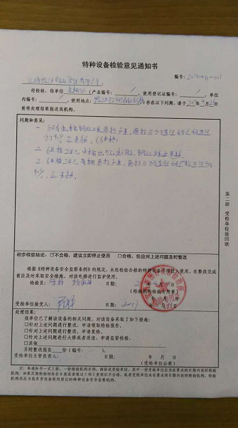 經(jīng)過特檢所現(xiàn)場檢驗,發(fā)現(xiàn)三部電梯鋼絲繩磨損嚴(yán)重,6號樓2單元中梯、北梯鋼絲均出現(xiàn)斷股,現(xiàn)場建議更換鋼絲繩,后出具特種設(shè)備檢驗意見通知書,對于檢查出的問題要求立即停止使用。