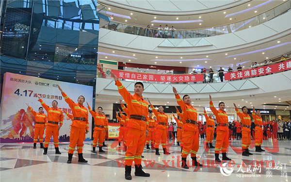 消防宣傳日,志愿者舞蹈表演。