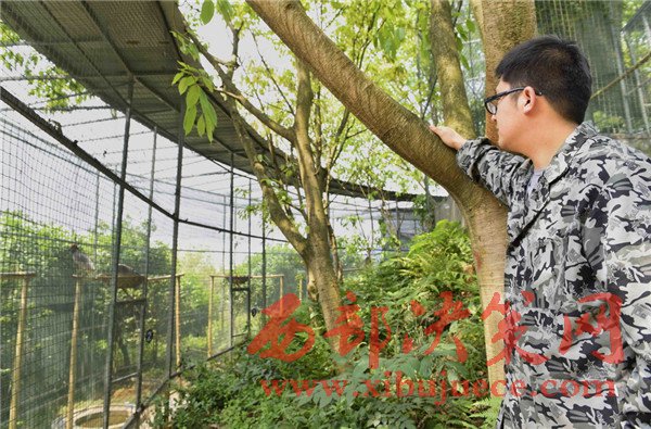 4月19日,工作人員在觀測朱鹮室外活動情況。