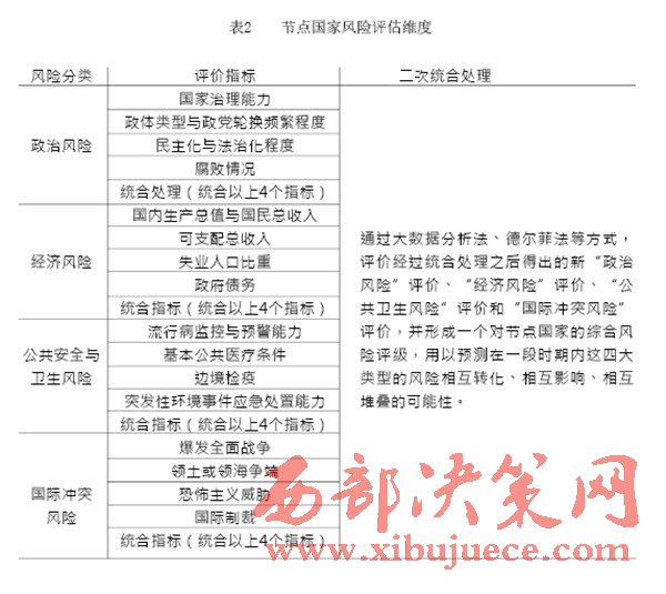 就目前階段而言,我們認為應當加入兩個綜合評價指標來統(tǒng)合“政治風險”“經(jīng)濟風險”“公共衛(wèi)生風險”和“國際沖突風險”。第一個綜合指標用以統(tǒng)合4個二級指標,反映同一類型的風險相互轉化、相互疊加或相互影響的程度;第二個綜合指標用以統(tǒng)合4個一級指標,反映不同類型的風險相互轉化、相互干擾或相互堆扎的程度。