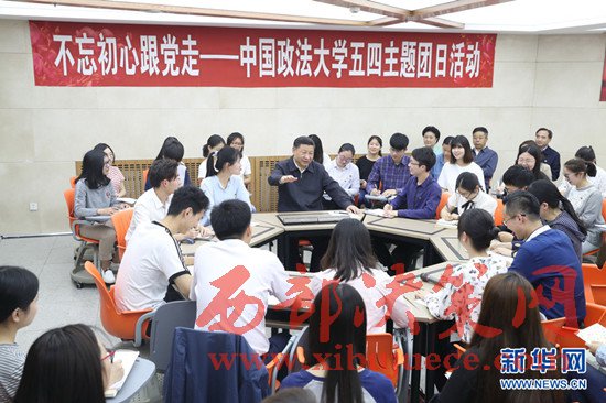 習(xí)總書記在參觀完中國(guó)政法大學(xué)校史及成果展之后,便來到青年學(xué)子們中間。在與民商經(jīng)濟(jì)法學(xué)院本科二年級(jí)2班團(tuán)支部交流電影《焦裕祿》的體會(huì)時(shí),總書記言近旨遠(yuǎn),就“不忘初心跟黨走”這一主題,與在場(chǎng)的學(xué)子們一起探討青春與理想。他對(duì)圍坐在身邊的同學(xué)們講,“共青團(tuán)是黨的助手和后備軍,要始終保持先進(jìn)性,廣大團(tuán)員青年堅(jiān)定跟黨走,就是初心”,“不忘這個(gè)初心,是我國(guó)廣大青年的政治選擇,也是我國(guó)廣大青年的人生航向”。
