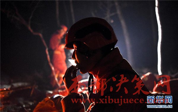 5月4日凌晨,武警內(nèi)蒙古森林總隊大興安嶺支隊三大隊一名戰(zhàn)士在休息時吃干糧。