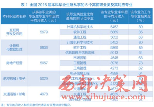 近日,麥可思研究院發(fā)布了一份有關(guān)中國(guó)大學(xué)畢業(yè)生收入情況的調(diào)查報(bào)告。數(shù)據(jù)顯示,在2016屆本科畢業(yè)生從事的職業(yè)類別中,“互聯(lián)網(wǎng)開(kāi)發(fā)及應(yīng)用”領(lǐng)跑職業(yè)高薪榜,畢業(yè)半年后平均月薪達(dá)5679元,此外,“房地產(chǎn)經(jīng)營(yíng)”也在高薪榜前列。