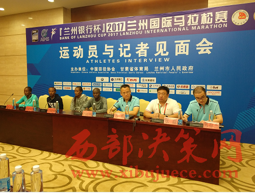 西部決策網-西部大開發(fā)訊(杜杰 帥華鋒)6月9日14時,2017蘭州國際馬拉松賽運動員與記者見面會在甘肅大劇院新聞發(fā)布廳舉行。