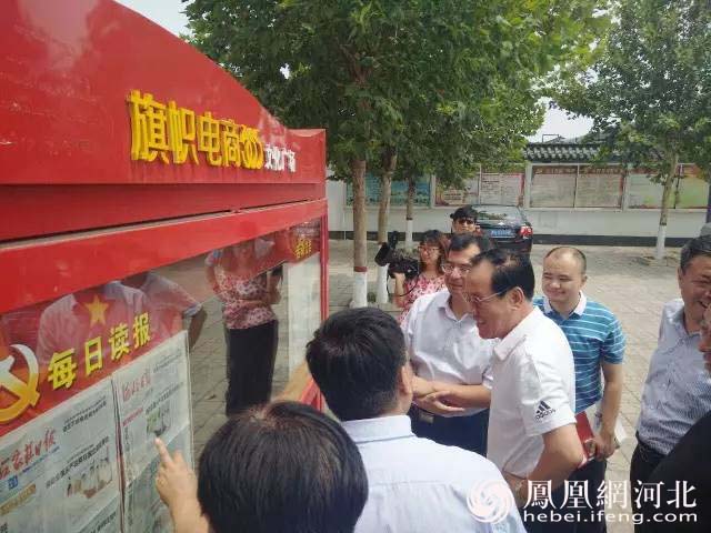 在東辛莊村委會(huì)“旗幟電商365”文化宣傳廣場(chǎng)和“新農(nóng)民講習(xí)所”,董經(jīng)緯詳細(xì)聽(tīng)取了河北365集團(tuán)董事長(zhǎng)于樹(shù)中關(guān)于“旗幟電商365”工程在鹿泉區(qū)開(kāi)展情況的匯報(bào),充分肯定了“旗幟電商365”在促進(jìn)農(nóng)村基層黨建和“兩學(xué)一做”教育實(shí)踐活動(dòng),協(xié)同地方黨委、政府,推進(jìn)黨旗引領(lǐng)下的生活服務(wù)下鄉(xiāng)、科技文化下鄉(xiāng)、普惠金融下鄉(xiāng)等“黨旗引領(lǐng)三下鄉(xiāng)”活動(dòng)中所起到的積極作用。
