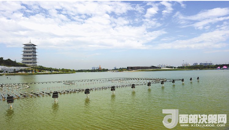 碧波蕩漾的西安浐灞生態(tài)區(qū)。 記者 袁景智攝