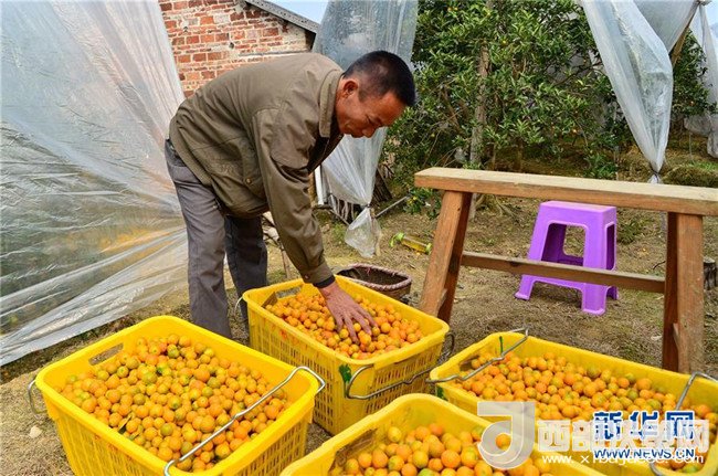 近年來(lái),廣西融安縣因地制宜,把金桔列為扶貧增收的重要產(chǎn)業(yè),通過(guò)農(nóng)業(yè)獎(jiǎng)補(bǔ)政策、專業(yè)種植技術(shù)培訓(xùn)等鼓勵(lì)貧困戶種植金桔,助力脫貧。融安縣大將鎮(zhèn)雅仕村的貧困戶漆昭賢,曾常年在外地打工,生活條件艱苦。2014年在縣里政策引導(dǎo)下,他返鄉(xiāng)種植金桔,并獲得專項(xiàng)補(bǔ)貼和無(wú)息貸款,連續(xù)三年參加縣農(nóng)業(yè)局等單位舉辦的種植技術(shù)培訓(xùn)班。如今,漆昭賢不僅在自己的地里種金桔,還承包了周圍農(nóng)戶的土地,種植面積十余畝,今年預(yù)計(jì)產(chǎn)量可達(dá)16000斤,純收入有望達(dá)到4萬(wàn)元。記者李絢麗攝