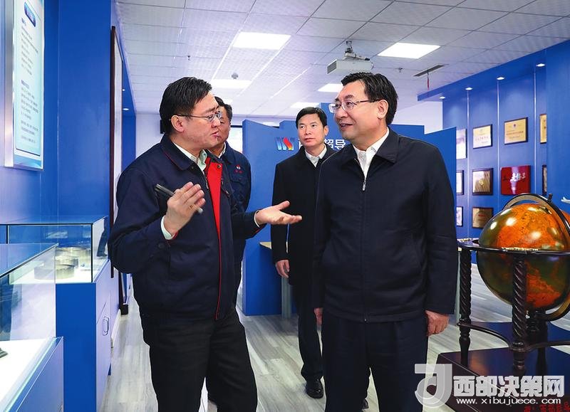 12月14日,省委書記、省長胡和平深入西北有色金屬研究院調(diào)研。圖為他在西部超導材料科技股份有限公司產(chǎn)品展示室聽取產(chǎn)品性能、應(yīng)用領(lǐng)域等介紹。陜西日報記者宋紅梅攝