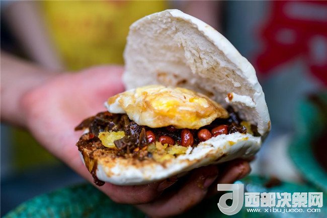 老金家蛋菜夾饃:嘗一口后你就愛上了這個夾饃,蛋黃一點都不咸而且口感還是面沙的,玫瑰咸菜是從小就愛吃的東西。