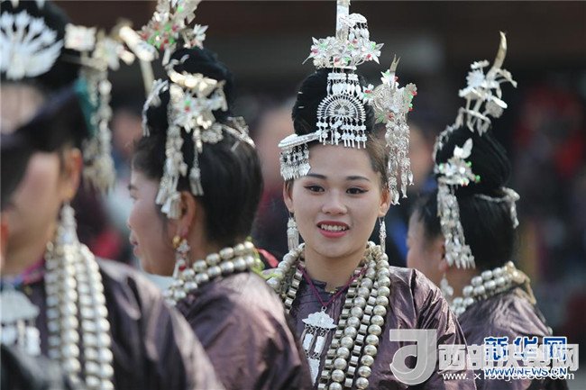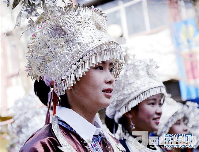 12月18日,身著盛裝的侗族同胞參加巡游。當(dāng)日,2017中國(guó)侗年暨第八屆黎平·中國(guó)侗文化旅游節(jié)“非遺”文化巡游在貴州省黔東南苗族侗族自治州黎平縣舉行,當(dāng)?shù)囟弊逋麣g聚一堂,喜迎侗年到來。(林世禎 攝)