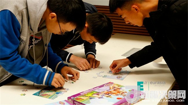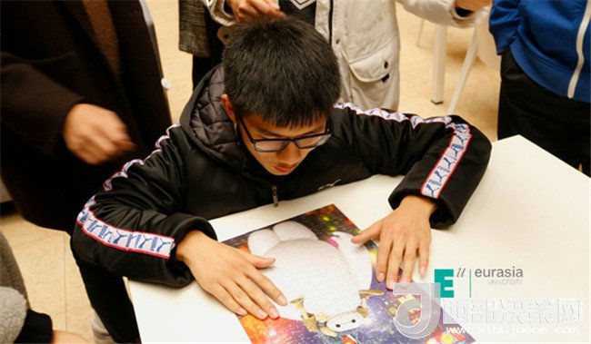 土豆和西紅柿根本就不是一個(gè)世界的,但它們走到了一起,變成了薯?xiàng)l和番茄醬它倆就是絕配;學(xué)籍制度和競(jìng)技運(yùn)動(dòng)也不是一個(gè)世界的,但它們?nèi)诤显诹艘黄?,變成了頭腦風(fēng)暴和趣味運(yùn)動(dòng)它們也可以很般配,現(xiàn)在就讓我們來看看它們是怎么融合的……聽那陣陣氣球爆炸的聲音,他們開始了!在這些綠油油的氣球中有事先設(shè)置的題目隊(duì)員們要先擠爆氣球答完題才能得到下一個(gè)地方的線索,“補(bǔ)考成績(jī)不合格以及成績(jī)低于50分必須怎樣?”“本科選修課學(xué)分不得低于多少學(xué)分?”這些題是不是還要開動(dòng)腦袋瓜仔仔細(xì)細(xì)的想想才有答案呢?在比賽的現(xiàn)場(chǎng)一秒都會(huì)和對(duì)手拉開差距,容不得一絲猶豫拿到線索的隊(duì)員們又奔向下一個(gè)地點(diǎn)熟悉的教室,這里也不是那么容易通過,看著黑板上的題“冰怎么很快的化成水?”“可替代大學(xué)英語四級(jí)成績(jī)的考試有哪些?”哦,還有計(jì)算題,隊(duì)員們必須腦洞大開,腦細(xì)胞飛速運(yùn)轉(zhuǎn),做學(xué)霸那也是不容易的。只見黑板上粉筆一起一落,答題完畢,看看線索迅速趕往下一地點(diǎn)——地中海。這里指壓板、跳繩早已準(zhǔn)備好等著隊(duì)員們,學(xué)霸不能只管學(xué)習(xí)身體素質(zhì)也很重要,動(dòng)起來吧!在指壓板上跳繩,誰想出來的?忍受著腳底的疼痛還要揮動(dòng)跳繩?太受虐,但是我們是一群不屈不撓的新一代,指壓板上跳繩我們也是鏗鏘有力、一絲不茍。終于結(jié)束痛并快樂著的跳繩環(huán)節(jié),卻看到了整整400塊的拼圖,這個(gè)環(huán)節(jié)真是讓人又愛又恨,還記得兒時(shí)玩拼圖的快樂,但在這激烈的競(jìng)爭(zhēng)環(huán)境下,卻是讓人有點(diǎn)心慌和畏懼。隊(duì)員們最終齊心協(xié)力戰(zhàn)勝了它,細(xì)心、耐心的逐一完好的拼完了每一副圖。