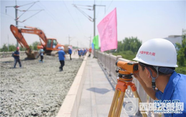 石濟(jì)客專引入石家莊樞紐工程的建設(shè)人員在進(jìn)行測(cè)量作業(yè)(6月15日攝)。這一工程預(yù)計(jì)今年12月底全線通車,建成后石家莊至濟(jì)南乘坐高鐵只需90分鐘左右。