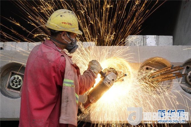 中鐵十四局集團(tuán)的工人在魯南高鐵山東臨沂段施工(11月2日攝)。魯南高鐵東起山東日照,向西經(jīng)臨沂、曲阜、濟(jì)寧、菏澤,與河南省鄭徐客運(yùn)專線蘭考南站接軌,預(yù)計(jì)2019年年底建成通車。