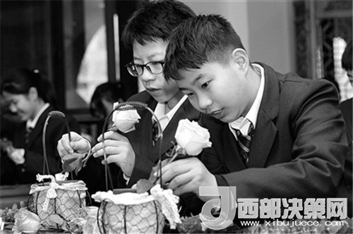 2017年12月18日,杭州新世紀(jì)外國語學(xué)校學(xué)生在學(xué)習(xí)插花。該校位于浙江杭州最老的城區(qū)——上城區(qū),該區(qū)匯集了眾多南宋文化遺跡,學(xué)校設(shè)立國學(xué)館“六藝閣”,推出“新六藝”(茶藝、園藝、棋藝、書藝、樂藝、手藝)課程,來自與“新六藝”有關(guān)的專業(yè)人士和從業(yè)家長成為課程教師。學(xué)生在為期一周的學(xué)習(xí)過程中通過親身體驗,了解南宋文化經(jīng)典和人文記憶,積淀人文底蘊,提升核心素養(yǎng),增強文化自信。(記者 鮑效農(nóng) 攝)