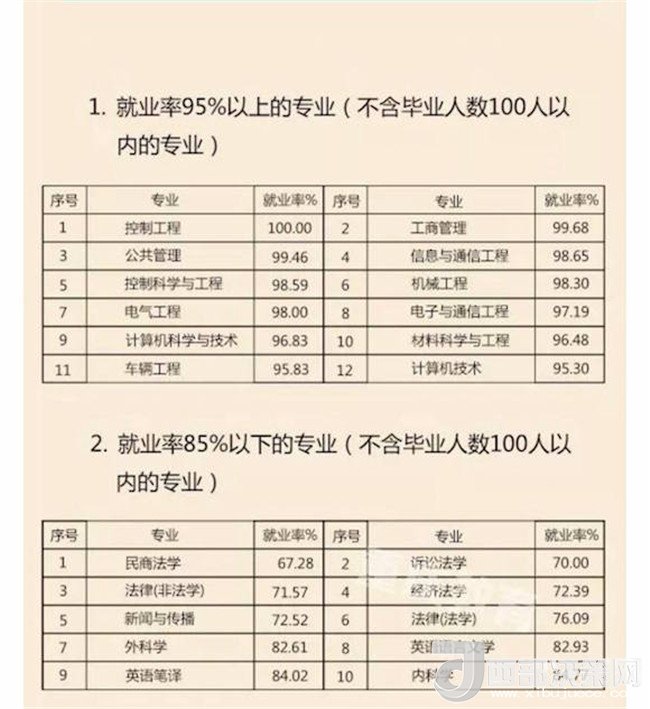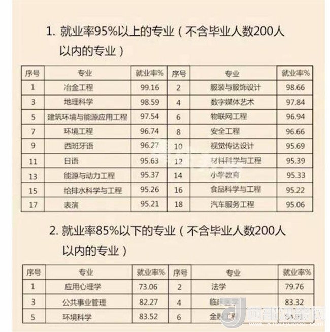 即將畢業(yè),你找到中意的工作了沒?近日,重慶市教委發(fā)布《重慶市2017屆普通高校畢業(yè)生就業(yè)情況報告》。據統(tǒng)計,2017年,全市共有普通高校畢業(yè)生約21.49萬人,截至2017年8月31日,我市2017屆普通高校畢業(yè)生就業(yè)率為89.65%,與2016屆同比上升0.56%。記者了解到,控制工程專業(yè)、藥品質量檢測技術、汽車服務與管理等專業(yè),其就業(yè)率達100%。哪個專業(yè)就業(yè)前景“低調卻奢華”?哪個專業(yè)只是“看上去很美”?趕緊往下看吧!