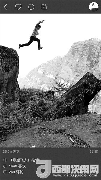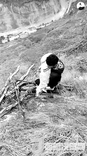 現(xiàn)在,村里24歲的彝族小伙兒拉博已經(jīng)成為首批網(wǎng)紅之一。2016年11月19日,垂直距離約800米、總共約1000級臺階的懸崖村鋼梯工程竣工。拉博就是鋼梯施工隊的一員,在山崖最陡峭的一段,他親手打下了固定的鋼釘。鋼梯完工后,拉博特意去“跑”了一遍,從山頂?shù)缴侥_僅耗時18分鐘,而這段路普通人可能需要一個半小時。從小放羊的拉博習(xí)慣了在山間奔跑跳躍,爬天梯、過吊橋、放牛羊這些生活日常,在5個月的時間里為他帶來了12.6萬的粉絲。