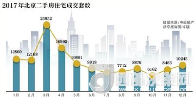 在一系列史上最嚴調控政策作用下,偉業(yè)我愛我家等多家機構數據顯示,2017年市場份額占比超8成的北京二手房市場,交易量減半,成交價格連跌8個月,政策調控效果顯著。