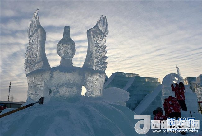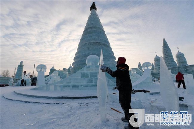 1月3日,在哈爾濱冰雪大世界園區(qū),冰雕選手在進行創(chuàng)作。當日,在哈爾濱冰雪大世界園區(qū)內舉行的國際組合冰冰雕比賽進入第四天。經過來自世界各地的冰雕選手悉心雕琢,一塊塊冰出落成精美的藝術作品,仿佛晶瑩剔透的出“冰”芙蓉。(記者 王建威 攝)