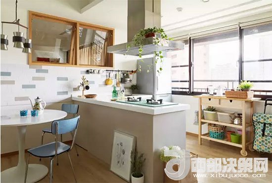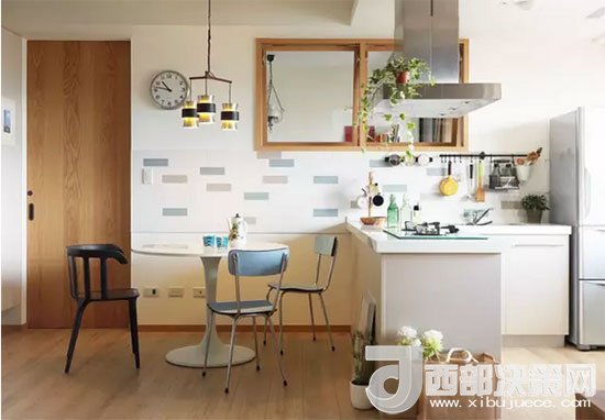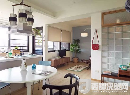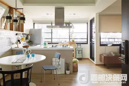 客餐廚一體,沒(méi)有了隔斷小空間一下變大,視線也變得十分通透。