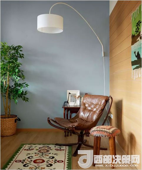 客廳的仿古沙發(fā)椅看著就很舒服。淡藍(lán)色的墻面襯托出白色釣魚(yú)燈優(yōu)美的線條。夜深燈亮,這里肯定是最溫馨的角落。
