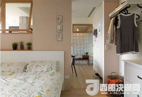 看得出臥室在哪兒?jiǎn)幔繘](méi)錯(cuò),臥室就在餐區(qū)和廚房的一側(cè),墻上的窗戶同樣也是為了增加采光和空氣的流通。