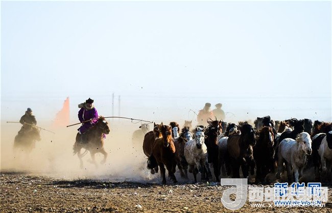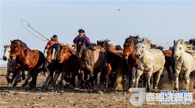 1月16日,在內(nèi)蒙古錫林浩特鳳凰馬場(chǎng),當(dāng)?shù)啬撩駛冑愸橊劇?br />
