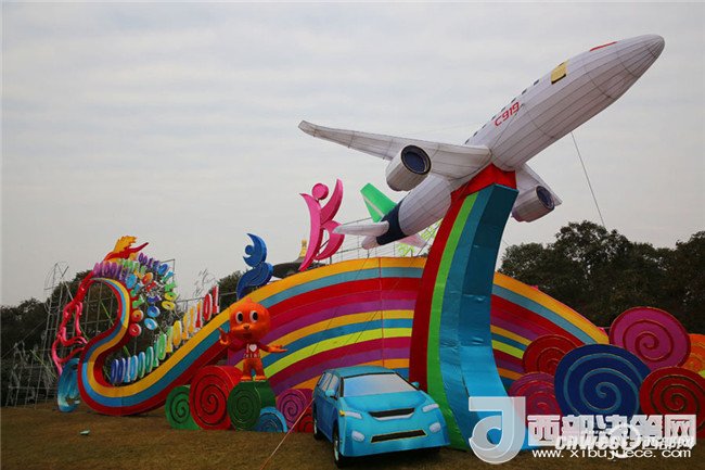 中國自主設(shè)計研制的C919國產(chǎn)大型客機(jī)也做成了彩燈,展示國家高精尖科技實(shí)力。