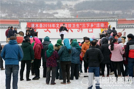 西部決策網(wǎng)-西部大開發(fā)訊(帥華鋒 通訊員 馬存福 楊兆康)大雪紛飛雪飄揚,過了臘八就是年。1月24日,由清水縣委宣傳部、文明辦、文廣局、縣委黨校、文化館、農(nóng)業(yè)局、縣醫(yī)院、中醫(yī)院、婦保站、文聯(lián)等單位組織開展的2018年文化科技衛(wèi)生“三下鄉(xiāng)”活動走進秦亭鎮(zhèn)全莊村。