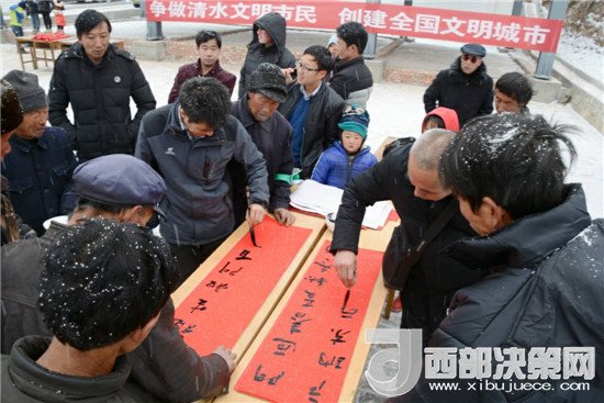 全莊村村民李春林拿著剛寫的春聯(lián)高興的說,今天是臘月八,快過年了,家里都沒有人會寫春聯(lián),還要到集市上去買,也要幾十塊錢,今天你們來的很及時,開展了這么大的文化活動,在我們村也是第一次,還給我們寫了對聯(lián),發(fā)了好多資料,從上面能學(xué)到很多知識,現(xiàn)在的政策就是好。