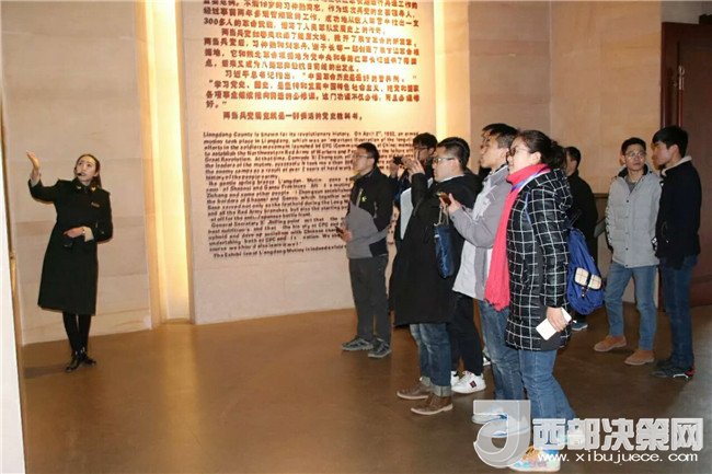 在講解員的引領(lǐng)下,大家進(jìn)入展廳??吹米屑?xì)、聽得認(rèn)真。莊嚴(yán)、肅穆的展館內(nèi),大量的照片、珍貴的文物以及講解員一句句生動詳細(xì)地解說,讓大家更加深入了解兩當(dāng)兵變當(dāng)事人的生平事跡。展區(qū)除了有文字介紹、圖片展示,還有兩當(dāng)兵變仿真場景模擬,形象逼真,使人有身臨其境之感。