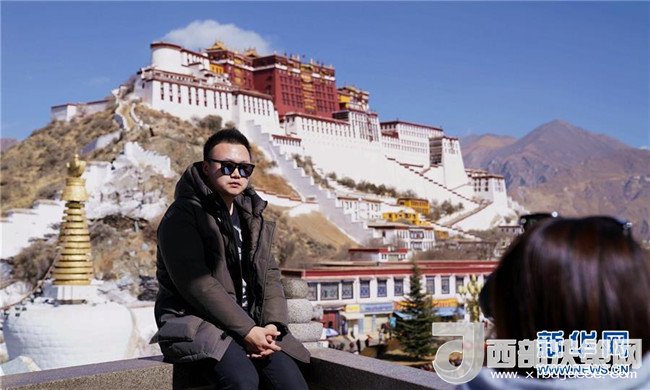 1月31日,一名游客在布達(dá)拉宮觀景臺上留影。