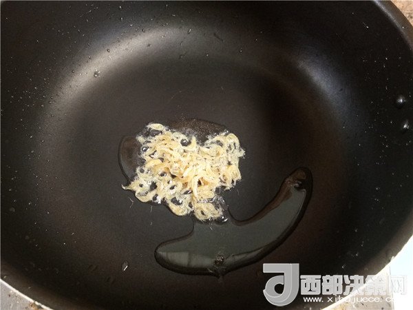4.熱鍋下油,小火放入蝦皮炒香。