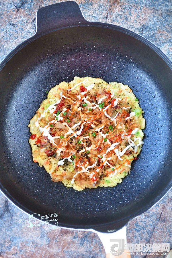 “大阪燒是一種日式蔬菜煎餅,有些地區(qū)根據(jù)日文漢字的寫(xiě)法,也叫做“御好燒”,為日本關(guān)西的一種民間美食,也是大阪飲食文化的代表。由于外觀(guān)的關(guān)系,也有人稱(chēng)大阪燒為“日本式比薩餅”,可以說(shuō)放上去的食材,并沒(méi)有特殊規(guī)定,一般是自己想吃什么就放什么。吃膩了中式的雞蛋薄餅,換個(gè)口味也別俱一格。做這個(gè)頂重要的是,一定要用不粘鍋,不然想翻面的時(shí)候,底部巴鍋底不動(dòng),而且還容易上面的沒(méi)熟,下面的已經(jīng)糊了。”