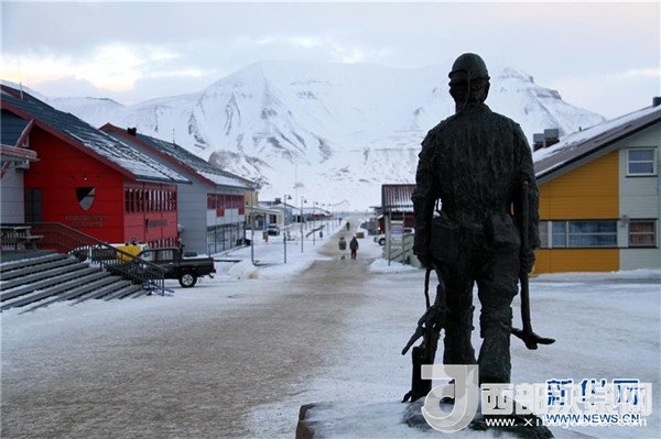2月25日,在挪威斯瓦爾巴群島首府朗伊爾城,著名的礦工塑像矗立在市中心的一條主要街道上。記者梁有昶攝