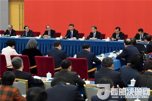 3月4日下午,中共中央總書記、國家主席、中央軍委主席習近平看望參加全國政協(xié)十三屆一次會議的民盟、致公黨、無黨派人士、僑聯(lián)界委員,并參加聯(lián)組會,聽取意見和建議。中共中央政治局常委、全國政協(xié)十三屆一次會議主席團會議主持人汪洋參加看望和討論。新華社發(fā)(盛佳鵬 攝)