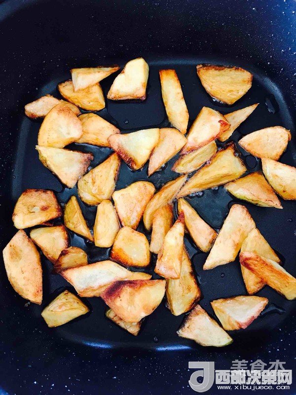 1、前期煎制要保持小火,土豆才會(huì)金黃,火大就黑了,火大就糊了,火大外面焦了里面還不熟,切記切記!還要要記得每面都沾上油,每面都要煎