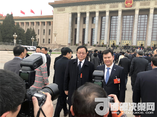 ?。▓D為全國(guó)人大代表張近東在十三屆全國(guó)人大一次會(huì)議上接受記者采訪)