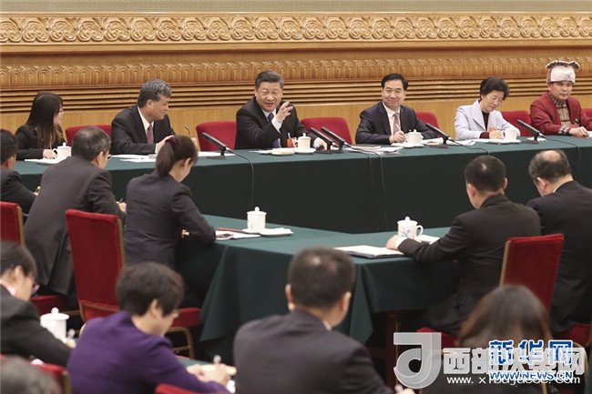 3月7日,中共中央總書記、國(guó)家主席、中央軍委主席習(xí)近平參加十三屆全國(guó)人大一次會(huì)議廣東代表團(tuán)的審議。 新華社發(fā)(盛佳鵬 攝)