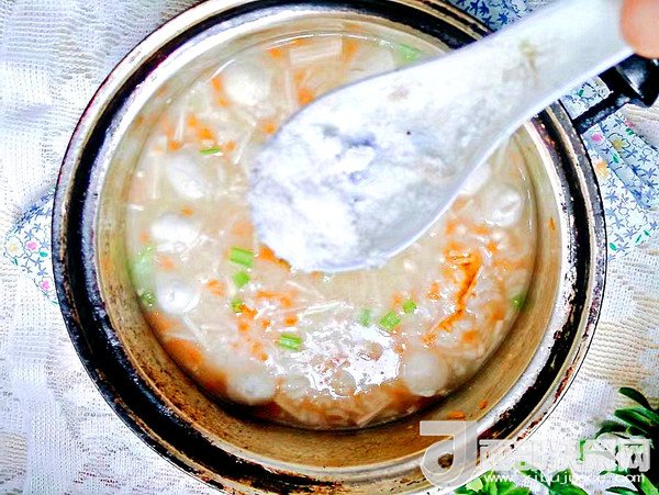 做給寶寶吃的蔬菜粥,寶寶不愛吃蔬菜,這不像方法做給他吃,胡蘿卜切丁,加入肉丸熬煮鮮美又營(yíng)養(yǎng)