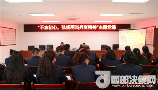 參觀結(jié)束后,兩當(dāng)兵變紀(jì)念館、兩當(dāng)縣國(guó)家稅務(wù)局黨員干部于二樓會(huì)議室開(kāi)展“不忘初心,弘揚(yáng)兩當(dāng)兵變精神”主題黨課及研討活動(dòng),兩當(dāng)兵變宣教科負(fù)責(zé)人、副研究館員茍昌盛同志就兩當(dāng)兵變精神作了深刻闡述。他以時(shí)間為序,從自古英雄出少年、提著腦袋搞兵運(yùn)、兵變打響兩當(dāng)城、等待時(shí)機(jī)再出征、精神永存豐碑聳五個(gè)方面,把大家?guī)У搅四莻€(gè)戰(zhàn)火紛飛的年代,近距離的了解了兩當(dāng)兵變的全過(guò)程,對(duì)兩當(dāng)兵變那段光輝歷史有了更深刻的認(rèn)識(shí)。