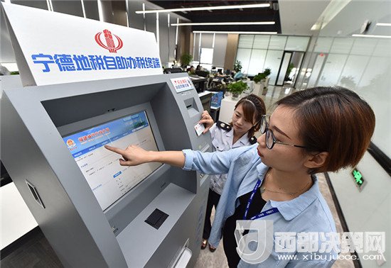 寧德時(shí)代新能源科技有限公司的員工在辦稅員的指導(dǎo)下試用自助辦稅終端(2017年10月12日攝)。新華社記者 宋為偉 攝