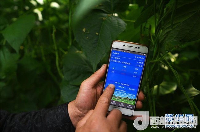 4月18日,甘肅省酒泉市肅州區(qū)總寨鎮(zhèn)總寨村村民范立德使用手機查看日光溫室的實時數據。