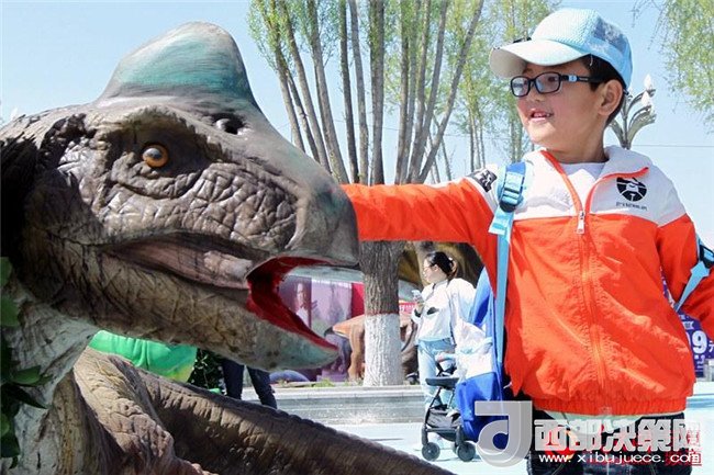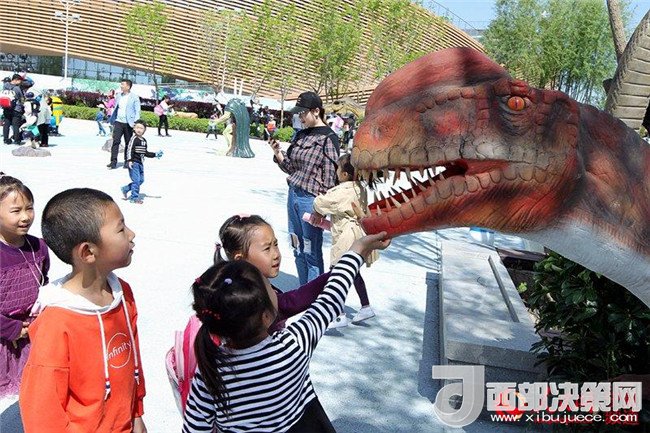 今天,神秘恐龍展在中國花卉博覽園啟幕?;ú﹫@里的大型侏羅紀(jì)恐龍展,仿若好萊塢電影里的侏羅世界,飛龍、霸王龍、三角龍……這些真實(shí)還原的仿真恐龍?jiān)煨透鳟?,吸引廣大銀川市民前來觀賞。(實(shí)習(xí)生 海東)