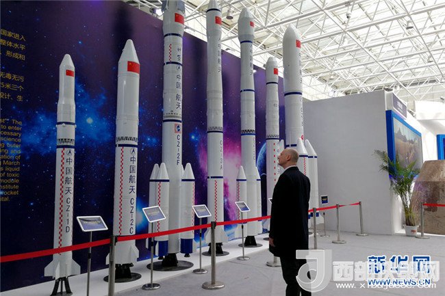 現(xiàn)場展示的藍箭航天商業(yè)運載火箭發(fā)動機等比例模型。新華網(wǎng)才萌攝